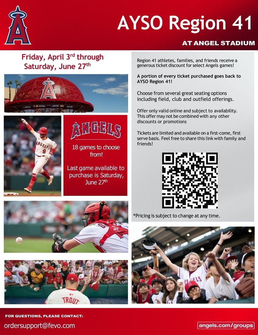 AYSO Region 41 athletes, families, and friends receive a generous ticket discount for select Angels games!